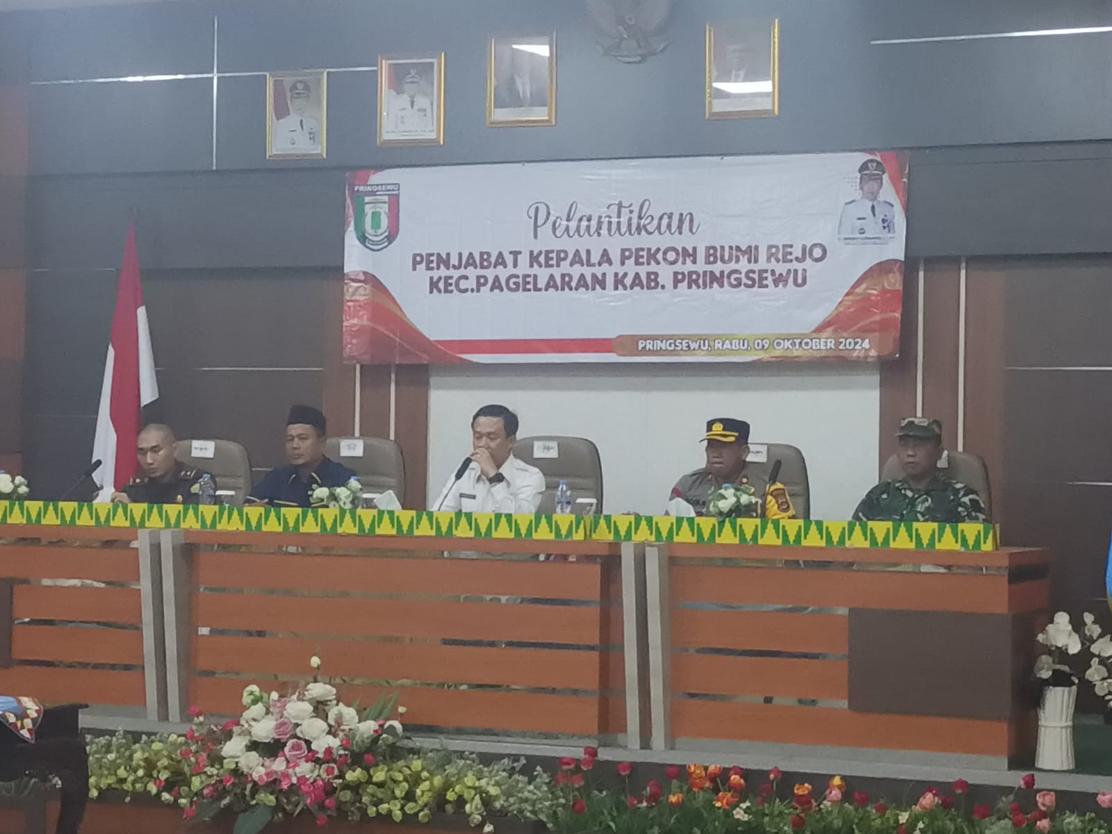 Danramil 424 – 07/ Gadingrejo, Kapten Inf Redi Kurniawan menghadiri acara pelantikan dan pengambilan sumpah/ janji pejabat Kepala Pekon Bumirejo Kecamatan Pagelaran Kabupaten Pringsewu Tahun 2024, bertempat di Aula Utama Bupati Pringsewu. Rabu (09/10/2024).