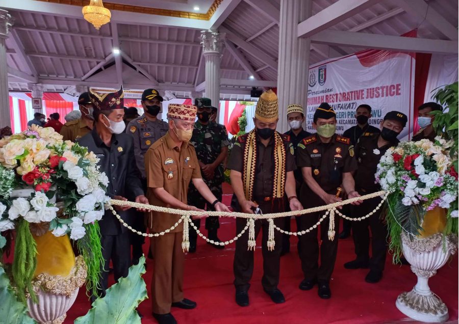 Danramil 424-07/Gadingrejo Kapten Inf Redi Kurniawan mewakil Dandim 0424/Tanggamus Letkol Arm Micha Arruan, SE., M.M. Hadiri Peresmian Rumah Restorative Justice oleh Kepala Kejaksaan Tinggi (Kajati) Lampung Nanang Sigit Yulianto, S.H., M.H. di Aula Pekon Wonodadi, Kecamatan Gading Rejo, Kabupaten Pringsewu, Selasa (12/4/2022).