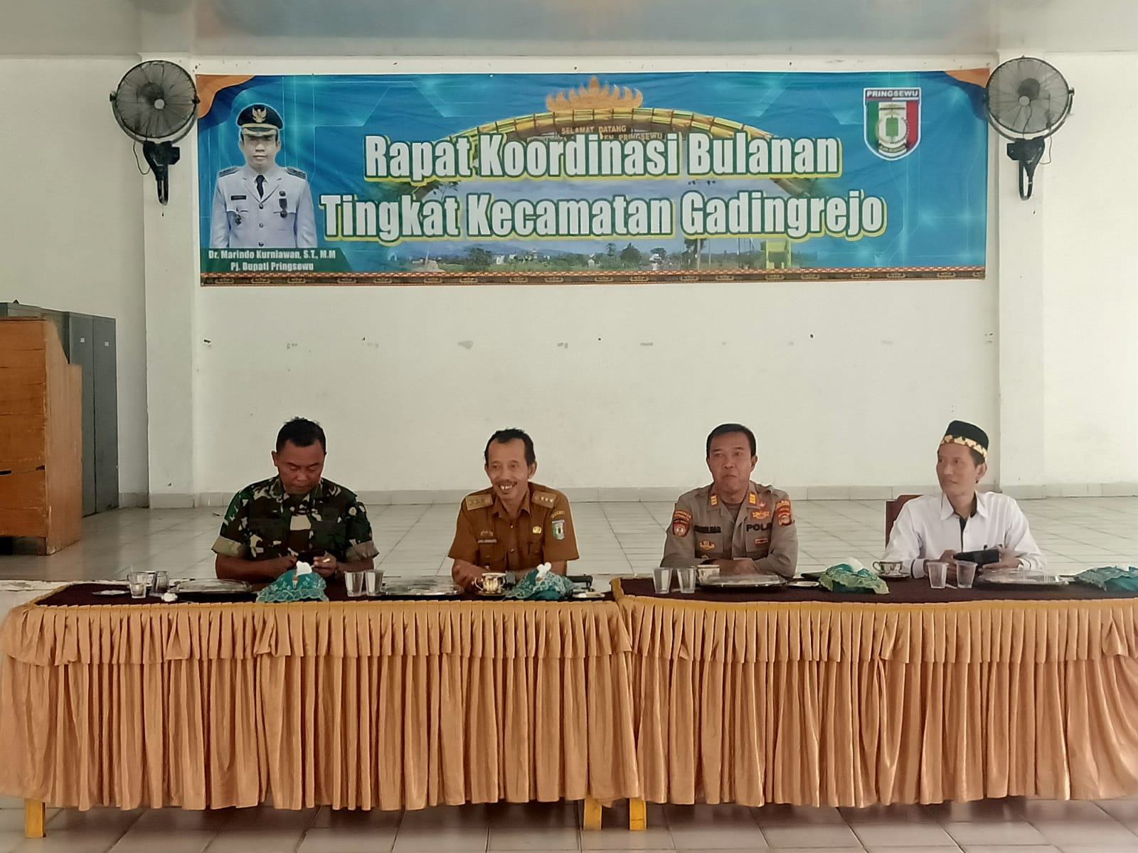Untuk mewujudkan hubungan yang harmonis antara Polisi, TNI, dan unsur pemerintahan Danramil 424-07/Gadingrejo Kapten Inf Redi Kurniawan menghadiri Rapat Koordinasi Tingkat Kecamatan bertempat di Gedung Serbaguna Kecamatan Gadingrejo, Selasa (30/04/2024).