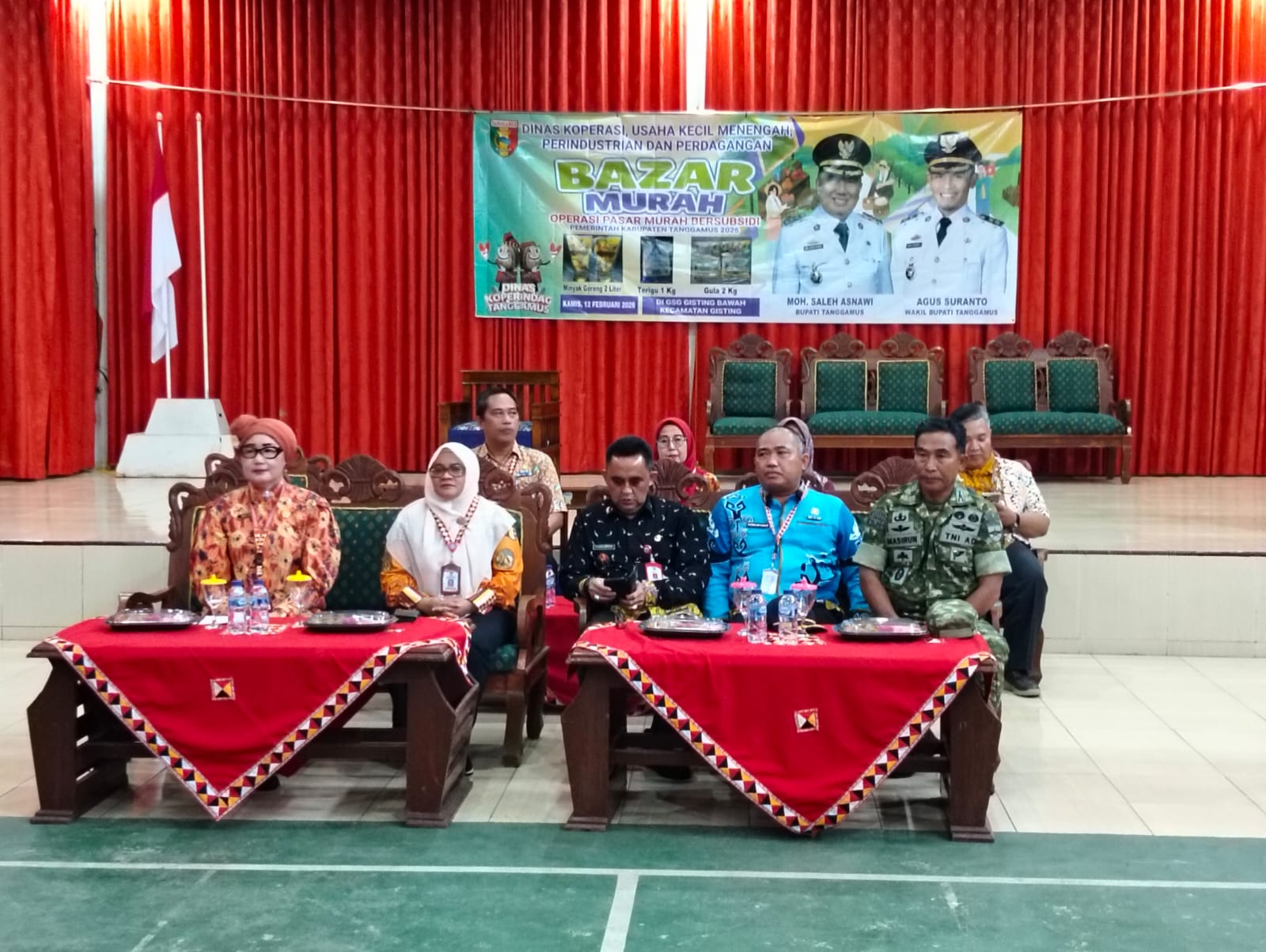 Tanggamus – Danramil 424-08/Pulau Panggung Lettu Inf Masirun menghadiri kegiatan Pasar Murah Bersubsidi Kabupaten Tanggamus Tahun 2026 yang digelar di Gedung Serba Guna (GSG) Gisting Bawah, Pekon Gisting Bawah, Kecamatan Gisting, Kabupaten Tanggamus, Kamis (12/02/2026).