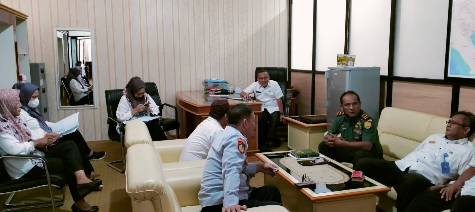 Danramil 424-08/Pulau Panggung Letda Inf Yulius Sitorus menghadiri Rapat Koordinasi Pengendalian Inflasi Daerah Tahun 2024 secara virtual Bertempat di Ruang Rapat Asisten II Kab. Tanggamus, Rabu (13/03/2024).