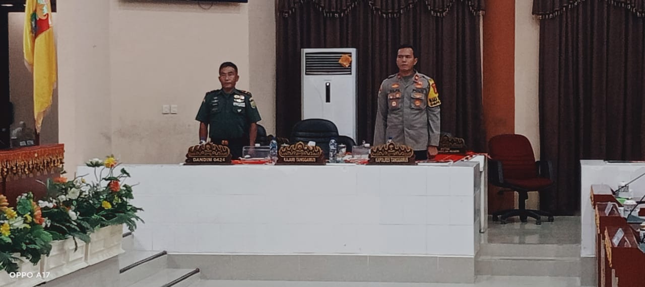 Danramil 424-08/Pulau Panggung Letda Inf Masirun menghadiri kegiatan Rapat Paripurna dalam Agenda Pembahasan rancangan kebijakan umum anggaran pendapatan dan belanja daerah Kabupaten Tanggamus (KUA) dan Prioritas plafon anggaran sementara (PPAS) Tahun Anggaran 2025 dan Penyampaian 4 (Empat) Ranperda inisiatif DPRD Kabupaten Tanggamus, Bertempat Ruang Sidang DPRD Kabupaten Tanggamus Kompleks Perkantoran Pemda Tanggamus, Jl. Urip Sumoharjo No.1 Pekon Kampung Baru Kec. Kotaagung Timur Kab. Tanggamus, Kamis (17/10/2024)