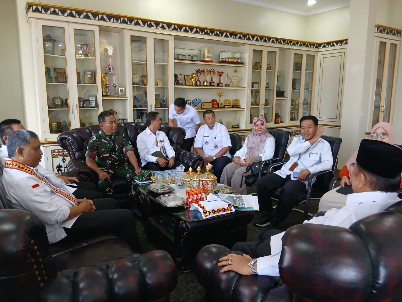 Danramil 424-08/Pulau Panggung Letda Inf Masirun mengikuti kegiatan Audiensi Dirjen Holtikultura Kementerian Pertanian RI, melalui Badan Perakitan dan Modernisasi Pertanian (BRMP) Kementerian Pertanian RI dalam rangka Program Percepatan Swasembada Pangan Nasional di Kabupaten Tanggamus, bertempat di Ruang Rapat Bupati, Kantor Bupati Tanggamus, Komplek Perkantoran Pemda Tanggamus, Pekon Kampung Baru Kec. Kotaagung Timur Kab. Tanggamus, Rabu ( 06/08/2025).