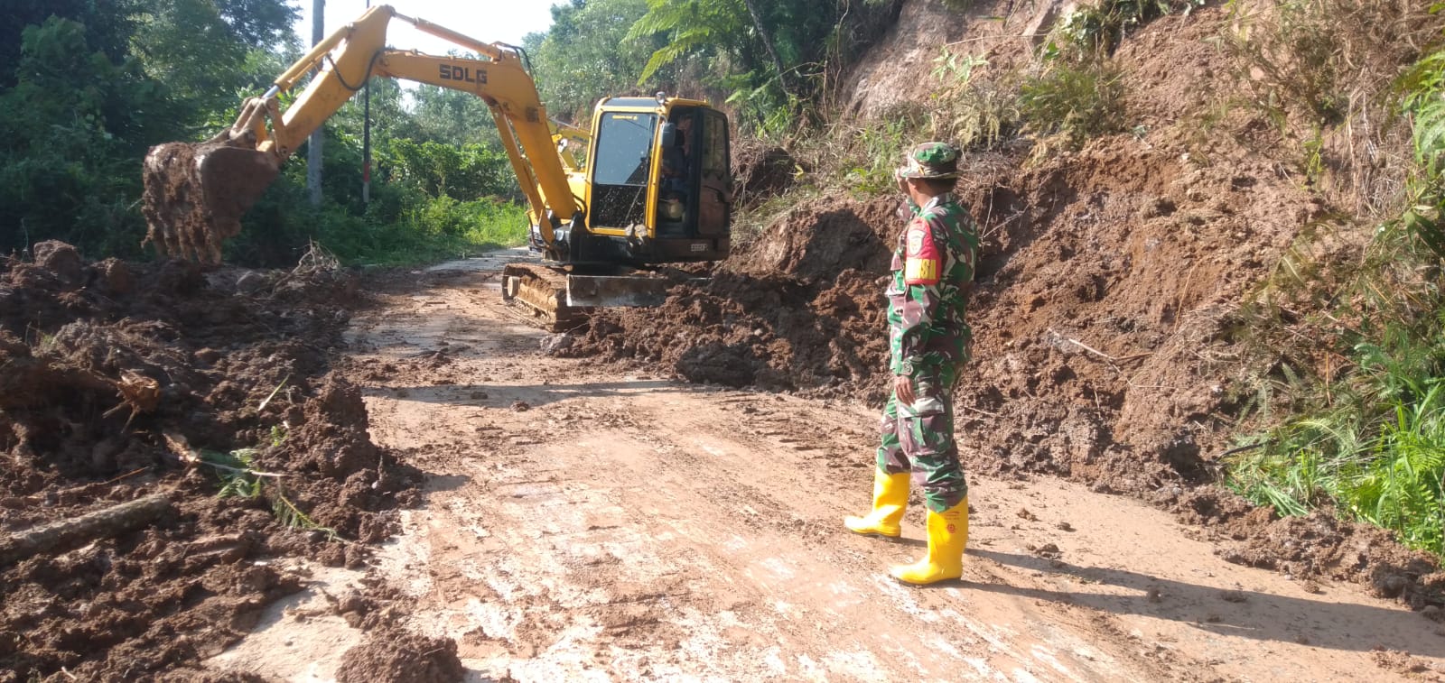 Danramil 424 – 08/ Pulau Panggung Melaksanakan Giat Monitoring Pembukaan Jalan Pasca Bencana Tanah Longsor