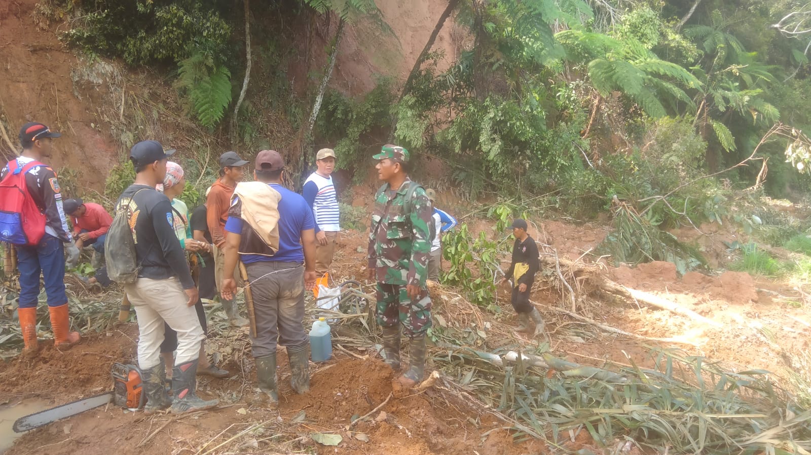 Lettu Inf Y Sitorus menjelaskan bahwa segera setelah kejadian, personel TNI dari Koramil 424 – 08/ Pulau Panggung, bersama masyarakat, serta relawan lainnya, melaksanakan pembersihan material dengan alat seadanya, agar jalan kembali dibuka dan bisa untuk dilalui kendaraan lainnya.