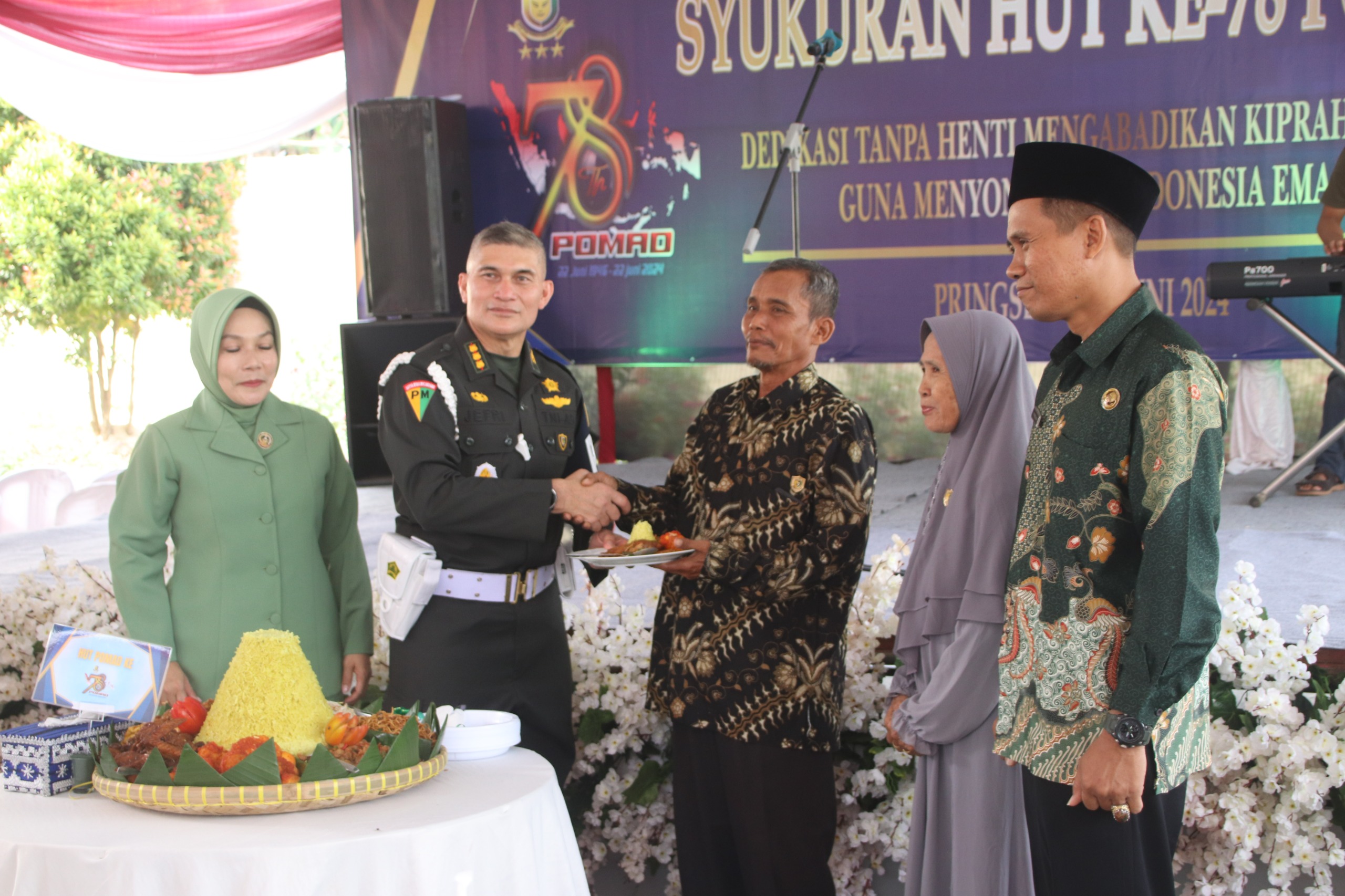 Danramil 424-09/Sukoharjo Kapten Cku Saleh Umar menghadiri Kegiatan Syukuran Dalam Rangka HUT Ke-78 POMAD Pomdam II/Swj Tahun 2024, bertempat di Monumen Tugu Gajah Mada Desa Panggung Rejo Kec. Sukoharjo Kab. Pringsewu, Sabtu (22/06/2024).