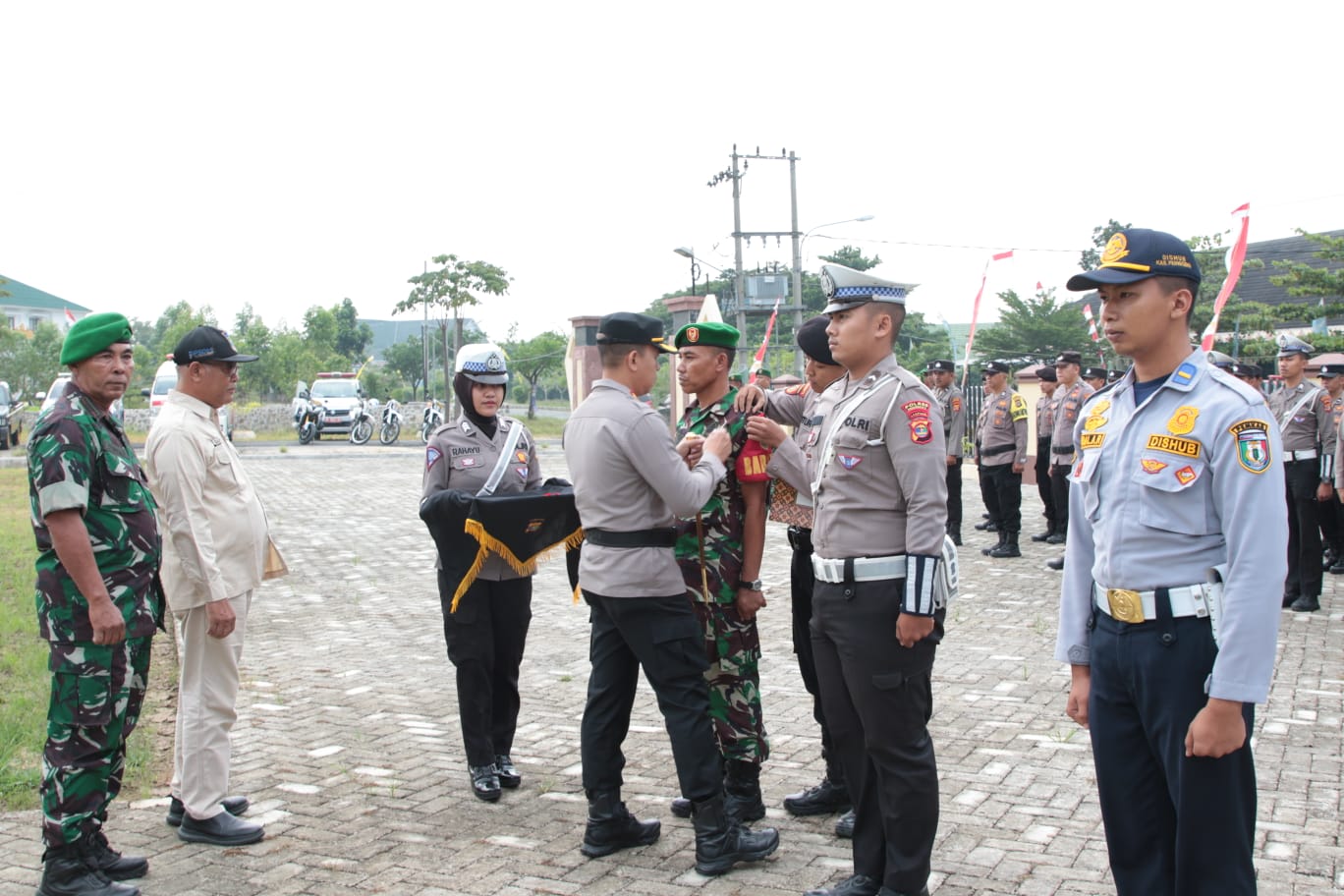 Danramil 424-09/Sukoharjo Kapten Cku Saleh Umar mengikuti apel gelar pasukan dalam rangka operasi ketupat tahun 2024 bertempat di Polres Pringsewu, Rabu (03/04/2024).
