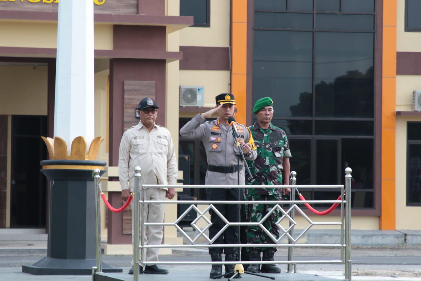 Danramil 424-09/Sukoharjo Kapten Cku Saleh Umar mengikuti apel gelar pasukan dalam rangka operasi ketupat tahun 2024 bertempat di Polres Pringsewu, Rabu (03/04/2024).