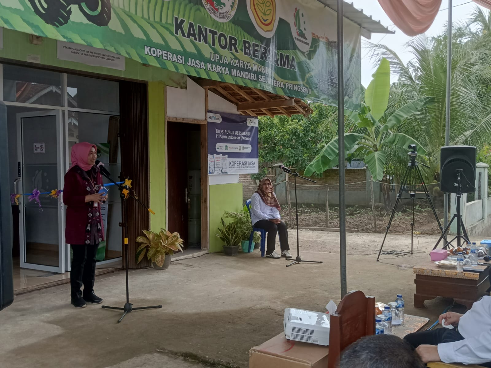 Hari ini yang sedang kita lakukan akan kita launching adalah Koperasi yang akan menjadi pengecer pupuk bersubsidi tersebut nah tentu saja sebagai kelembagaan ekonomi yang berbadan hukum atau berbadan usaha koperasi gapoktan atau korporasi ini nantinya tidak hanya melulu kegiatan usahanya adalah pupuk, tapi juga bisa untuk kegiatan-kegiatan lain yang intinya adalah bisa menghasilkan lebih banyak manfaat.