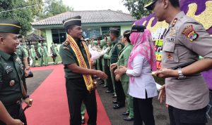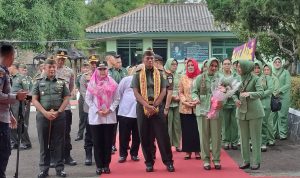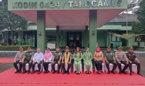 Dandim 0424 Tanggamus, Letkol Inf Vicky Heru Harsanto,S.I.P.,M.Si dengan di dampingi Ibu Ketua Cabang Persit KCK Cab XLVI Kodim 0424/Tgm Ny Lia Vicky Heru Menyambut Kunker Danrem 043/Gatam dan Ketua Persit Kartika Chandra Kirana Koorcab Rem 043 PD II/SWJ di Makodim 0424/Tanggamus Kamis (13/07/2023).