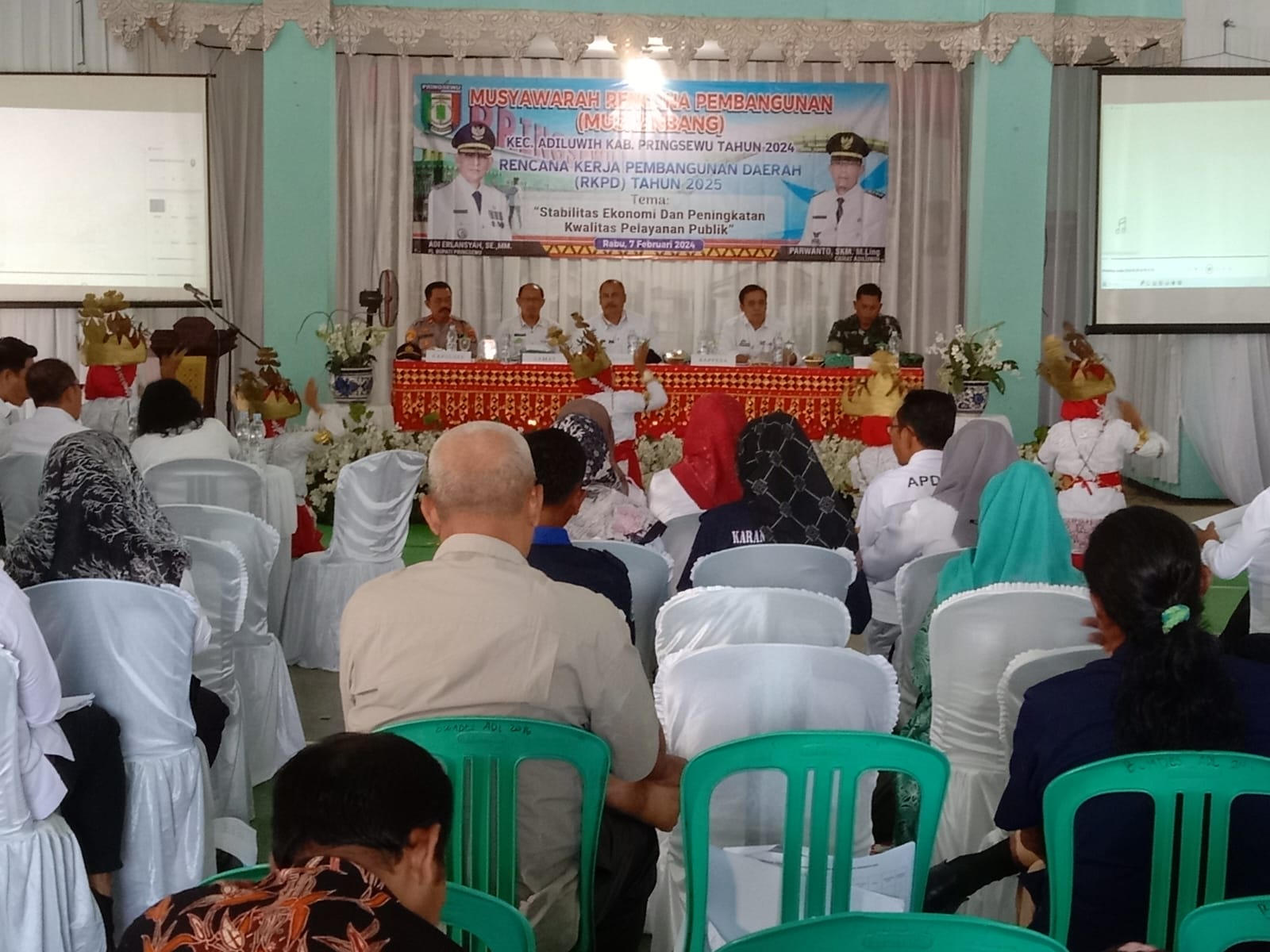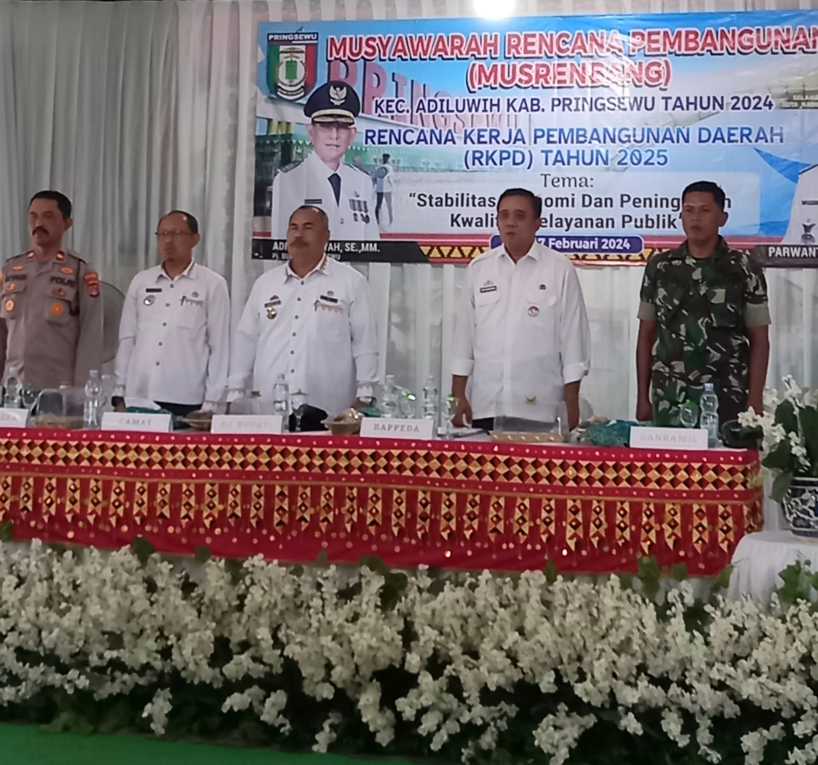 Dalam Rangka mendukung program pembangunan di desa binaan,Babinsa Koramil 424-09/Sukoharjo Pelda Hermawan menghadiri kegiatan Musyawarah Perencanaan Pembangunan (Musrenbang) bertempat di Kec. Adiluwih, Kab. Pringsewu, Rabu (07/02/2024)