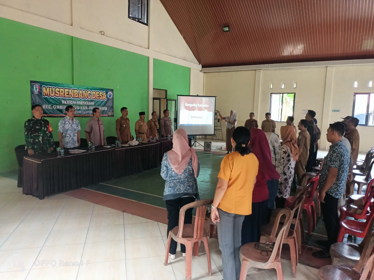 Mendukung pembangunan di wilayah binaan, Babinsa Koramil 424-07/Gadingrejo Sertu Rohmanudin menghadiri Musrenbangdes tahun 2024, kegiatan di Balai Pekon Mataram, Kec. Gadingrejo, Kab. Pringsewu, Selasa(14/11/2023).