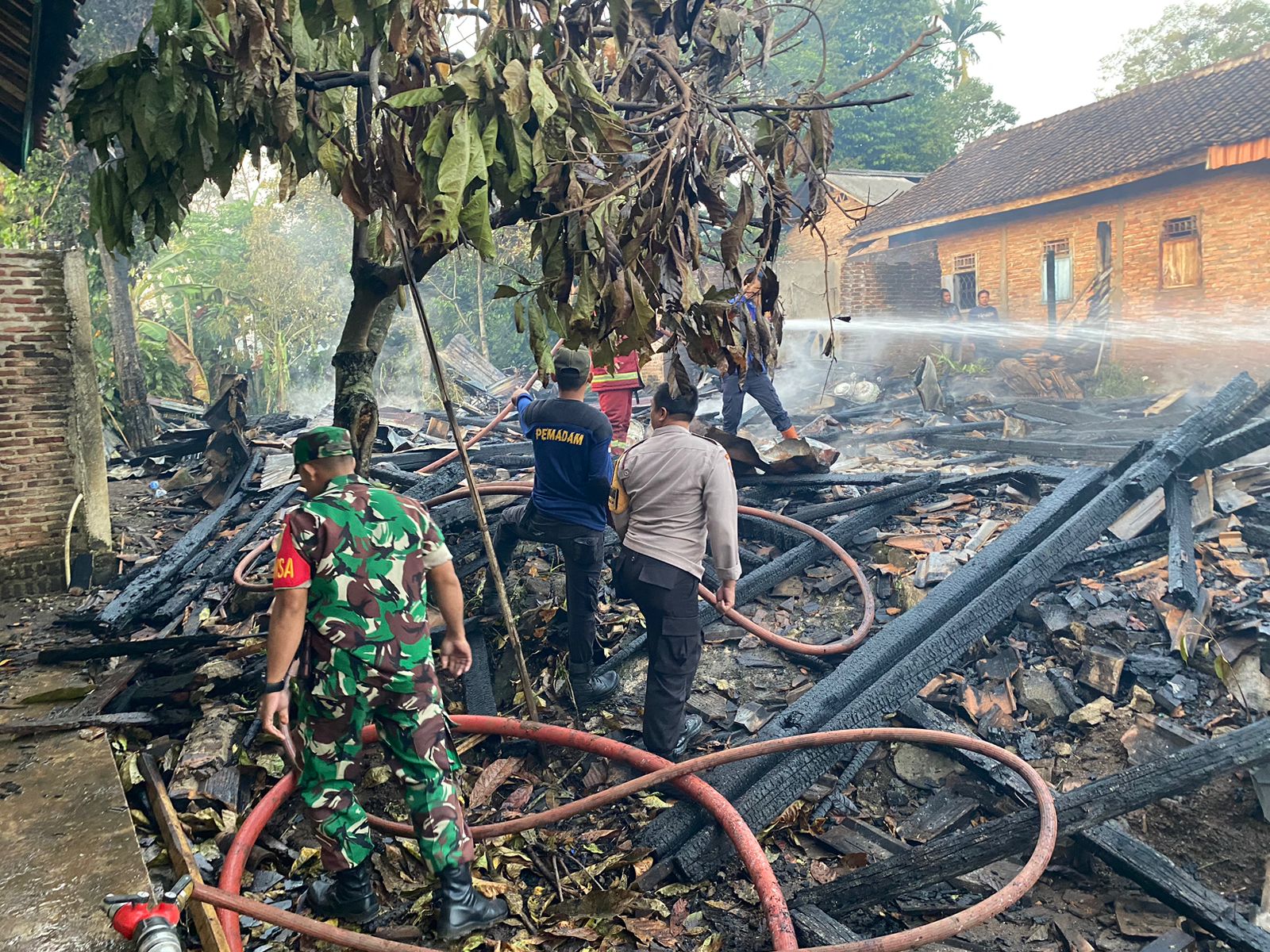 “Bersama petugas Damkar, Kepolisian dan dibantu masyarakat kita bergotong royong memadamkan kobaran api yang telah membakar rumah warga ini. Alhamdulillah setelah berselang beberapa waktu api dapat di padamkan,”ujar Danramil.