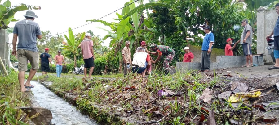 Seperti halnya yang dilakukan Anggota Babinsa Koramil 424-02/Wsb, Serda Dwi Suryanto yang ikut melaksanakan kegiatan gotong royong bersama warga area jalan depan perumahan warga dan parit parit aliran air di kiri kanan jalan, Kamis (03/02/22).