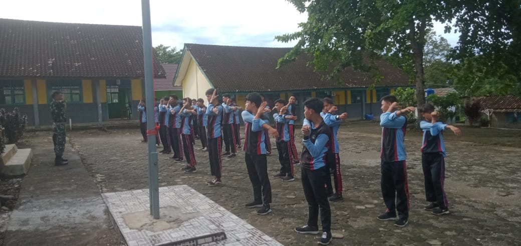 Untuk menjaga kesehatan dan kebugaran sebelum dimulainya kegaitan belajar mengajar, Babinsa Koramil 424-03/Kota Agung Serda Suhendra mengajak siswa-siswi SMK Negeri 1 Kotaagung Barat melakukan senam pemanasan di halaman sekolah,  Kamis (25/04/2024).