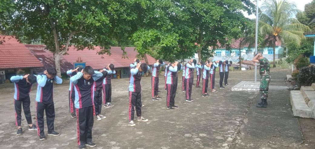 Untuk menjaga kesehatan dan kebugaran sebelum dimulainya kegaitan belajar mengajar, Babinsa Koramil 424-03/Kota Agung Serda Suhendra mengajak siswa-siswi SMK Negeri 1 Kotaagung Barat melakukan senam pemanasan di halaman sekolah,  Kamis (25/04/2024).
