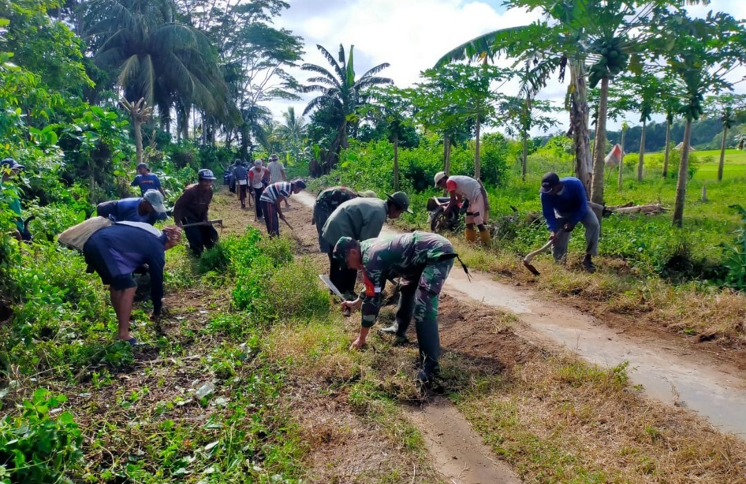 Pada kesempatan tersebut Pelda Suwasto mengajak gotong-royong masyarakat membersihkan sampah dan rumput liar di pinggir badan jalan di wilayah binaan tersebut, sehingga nantinya membuat kondisi jalan menjadi terelihat bersih dan terpelihara.