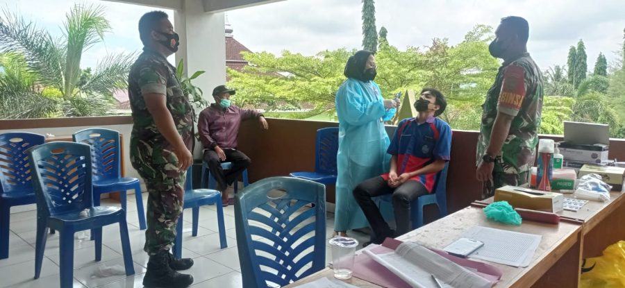 Tanggamus – Guna mencegah penyebaran Covid- 19, Kapten Inf Redi Kurniawan Danramil 424-07/Gdr beserta 3 orang anggota jajaran yang sebelumnya telah mengikuti pelatihan workshop Training of Trainer (TOT) Covid-19 diterjunkan guna membantu pelaksanaan 3T yakni Testing, Tracing dan Treatment di wilayah teritorialnya. Rabu (02/02/22)