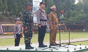 Kasdim 0424/Tanggamus Mayor Inf Solikhul Makruf menghadiri Apel Gelar Pasukan Operasi Mantap Praja Kerakatau 2024 Bertempat di Lapangan Pemerintahan Daerah Kabupaten Tanggamus. Senin (26/8/2024).