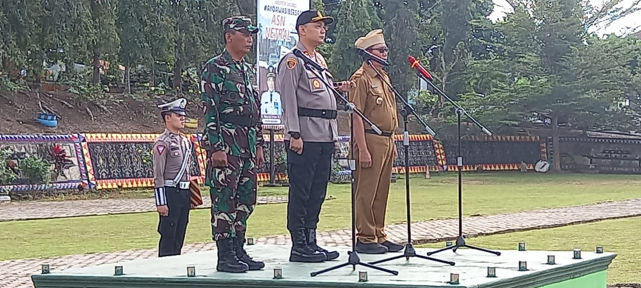 Bapak Ibu sekalian seperti kita ketahui bersama apel gelar pasukan ini merupakan dalam rangka pemeriksaan Kesiapan petugas pengamanan baik dari unsur TNI dari POLRI dari jajaran Pemerintah daerah untuk melakukan pengecekan terhadap terkait masalah kesiapan dalam pilkada.