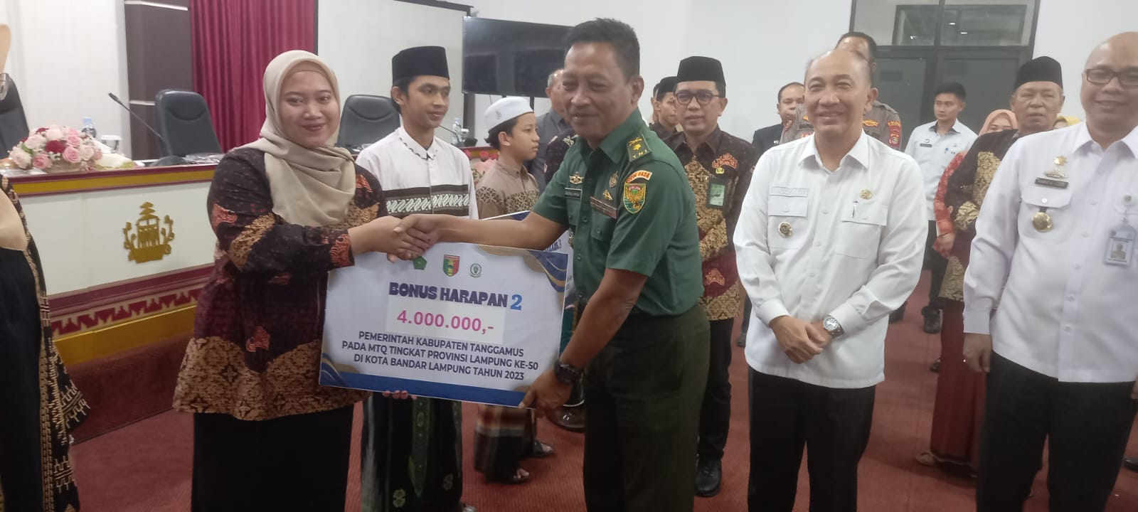 Kasdim 0424/Tanggamus Hadiri Pemberian Bonus Peserta Terbaik Kafilah MTQ Kabupaten Tanggamus
