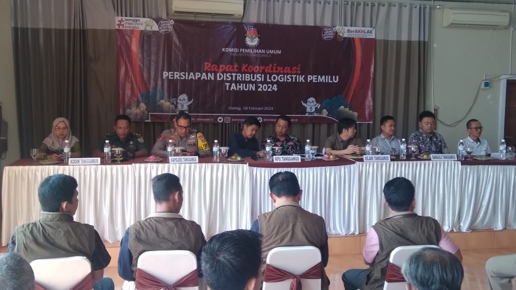 Ketua KPU Kab. Tanggamus Angga Lazuardy, S.E. menyampaikan Rapat koordinasi diselenggarakan dalam rangka membahas bagaimana langkah dan proses pendistribusian logistik pemilu tahun 2024 di Kabupaten Tanggamus.