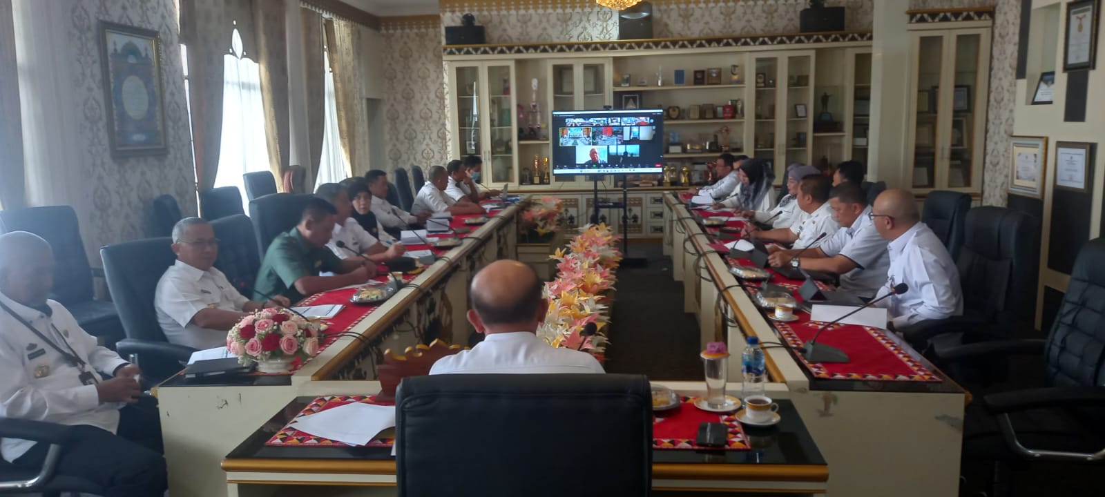 Kasdim 0424/Tanggamus Mayor Inf Solikhul Makruf menghadiri kegiatan rapat koordinasi pengendalian inflasi daerah bersama kementerian dalam negeri secara Vidio conference, Bertempat di ruang rapat bupati tanggamus, Rabu (27/12/2023)