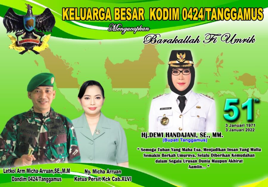 Keluarga Besar Kodim 0424 Tanggamus Mengucapkan Barakallah Fi Umrik “Selamat Ulang Tahun Bupati Tanggamus”redaksiJanuari 3, 2022Januari 3, 2022Informasi