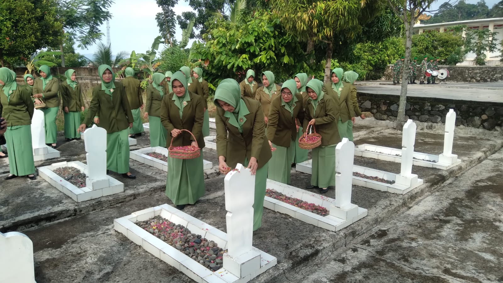 Ketua Persit KCK Cabang XLVI Kodim 0424 Ny. Lia Vicky Heru Harsanto Pimpin Ziarah Rombongan Dalam Rangka Memperingati HUT ke-78 Persit Kartika Chandra Kirana Tahun 2024 bertempat di Taman Makam Pahlawan Bahagia, Pekon Kagungan Kec. Kota Agung Timur Kab.Tanggamus, Selasa (2/3/24).
