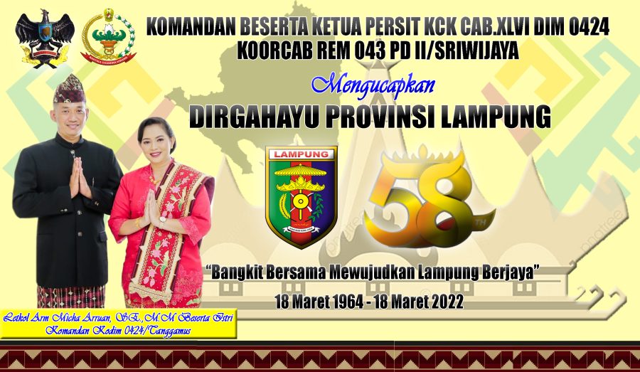 Kodim 0424 Tanggamus : Dirgahayu Provinsi Lampung “Bangkit Bersama Mewujudkan Lampung Berjaya”adminMaret 18, 2022Maret 18, 2022Berita Utama