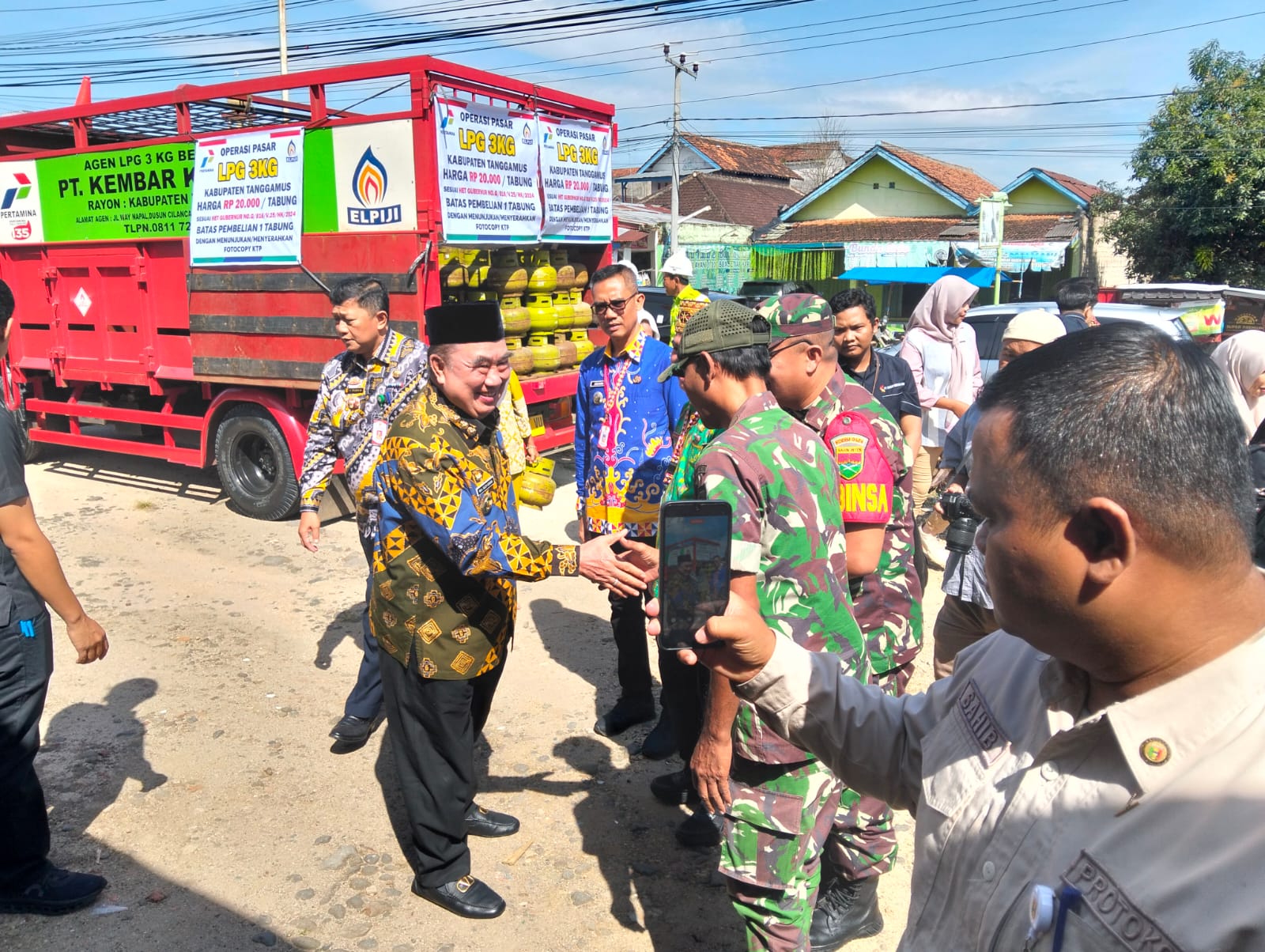 Tanggamus – Dalam rangka membantu menjaga stabilitas harga dan ketersediaan kebutuhan energi masyarakat menjelang Hari Raya Idul Fitri 1447 H/2026 M, Babinsa Koramil 424-04/Talang Padang Kodim 0424/Tanggamus, Peltu Nurhayadi, menghadiri kegiatan Operasi Pasar Gas LPG 3 Kg Bersubsidi yang diselenggarakan oleh Satgas Tim Pengendalian Inflasi Daerah (TPID) Kabupaten Tanggamus.Kegiatan tersebut dilaksanakan di Kantor Camat Talang Padang, Jl. Radin Inten, Pekon Sukarame, Kecamatan Talang Padang, Kabupaten Tanggamus, Kamis (26/02/2026).