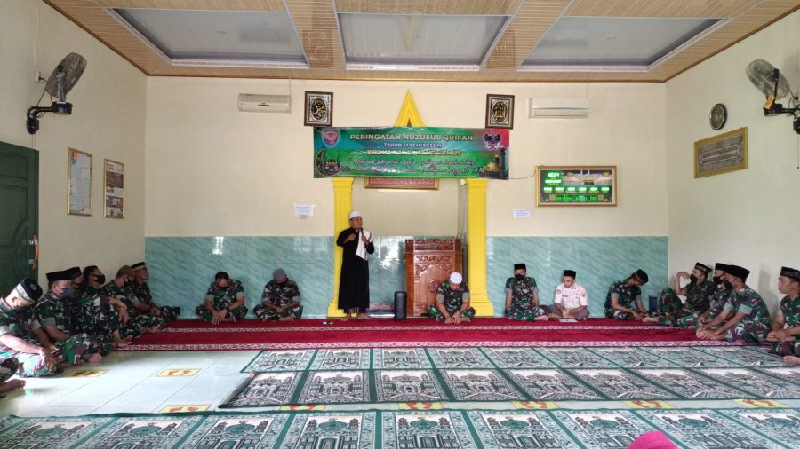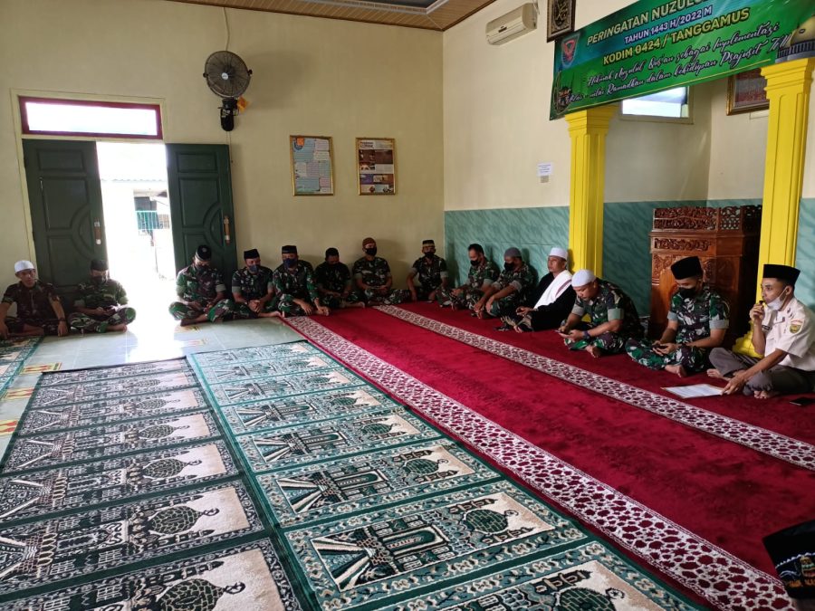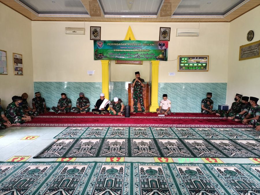 Tanggamus – Keluarga Besar Kodim 0424/ Tanggamus memperingati Nuzulul Qur’an 1443 Hijriah/ 2022 M, kegiatan Nuzulul Qur’an berlangsung di Mushola Ar Ribath Kodim 0424/ Tanggamus, Jum,at 22 april 2022.