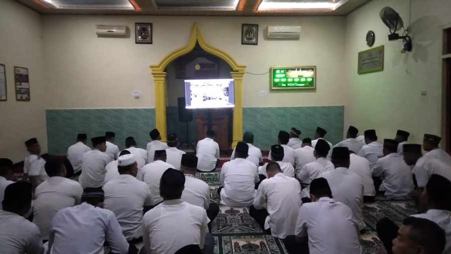 Kodim 0424/Tanggamus mengikuti kegiatan Muhasabah dan Istighosah Kubro Secara Virtual Dalam Rangka Peringatan Isra Mi’raj Nabi Muhammad SAW Tahun 2023 bertempat di Mushola Ar-Ribath Makodim 0424/Tanggamus, Minggu (19-02-2023).