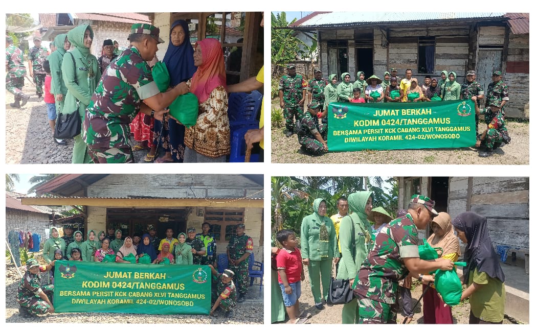 Program Jumat Berkah Kodim 0424/Tanggamus pekan ini kembali di gelar di wilayah teritorial Koramil 424-02/Wonosobo yang dipimpin langsung oleh Dandim 0424/Tanggamus, Letkol Inf Vicky Heru Harsanto, S.I.P., M.Si dan didampingi Ketua Persit KCK Cab. XLVI, Ny Lia Heru Harsanto, Danramil 424-02/Wonosobo Lettu Kav Mahroy serta anggota Babinsa dan Persit, bertempat di Pekon Dadirejo, Kec. Wonosobo, Kab. Tanggamus, Jum’at (01/11/2024).