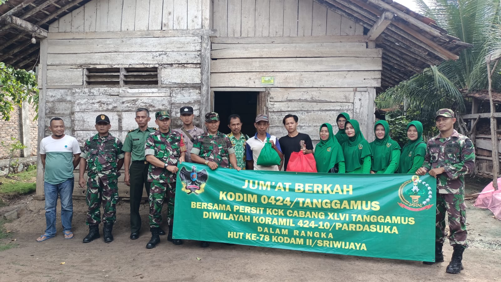 Kodim 0424/Tanggamus kembali menggelar jumat berkah di wilayah teritorial Koramil 10/Pardasuka di Pekon Sukorejo, Kec. Pardasuka, Kab. Pringsewu. Jum’at (08/12/2023).