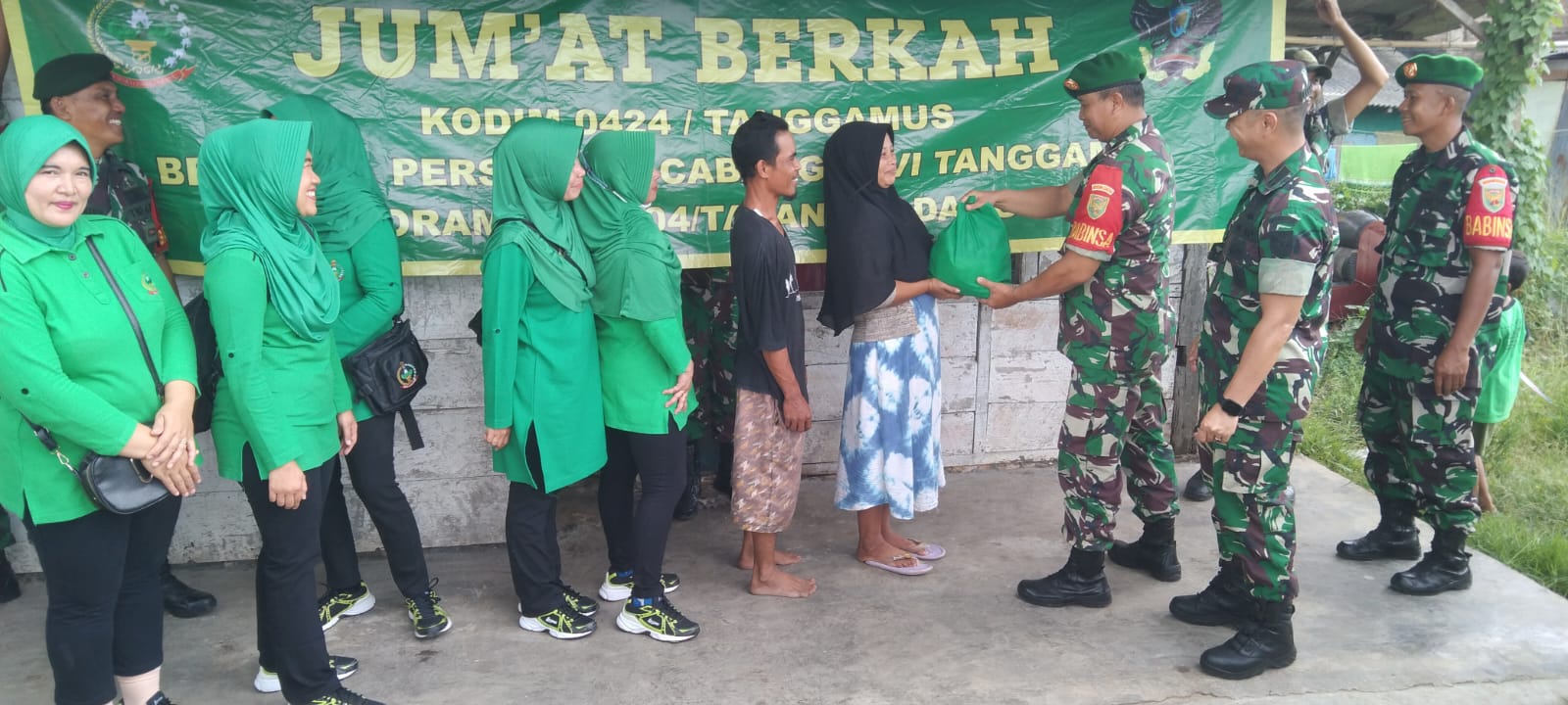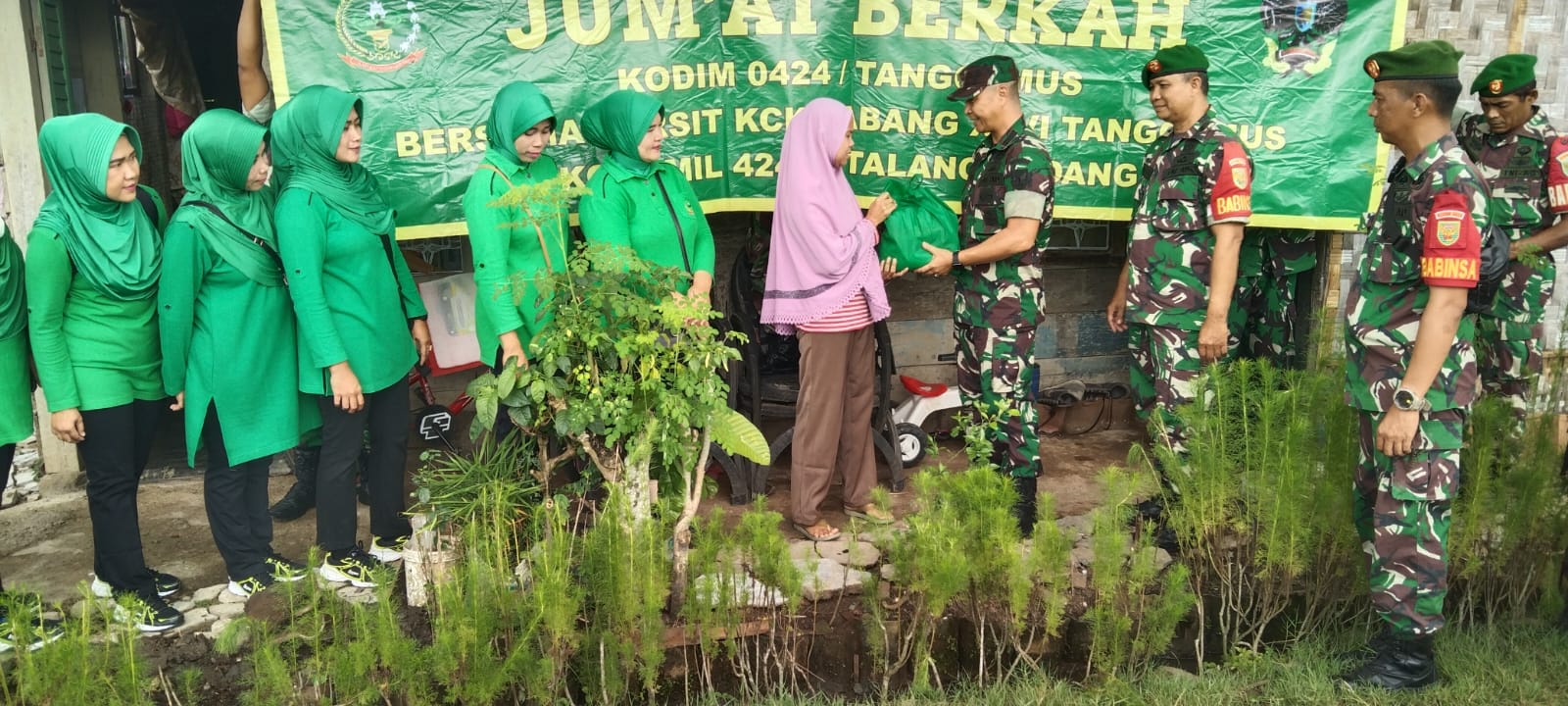 Kodim 0424/Tanggamus dipimpin Oleh Danramil 424-04/Talangpadang Kapten Inf Rio Antomi bersama Persit Laksanakan Jumat Berkah untuk Lansia di Dusun Kebon Pisang Pekon Sukarame Kec. Talang Padang Kab. Tanggamus Jum’at (07/07).