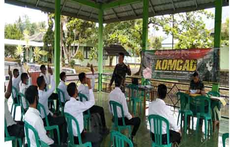 Batih Pers Kodim Sertu Usri mewakili Pasipers Kodim 0424/Tanggamus Kapten Inf Juliani Abri memberikan materi tentang persyaratan pendaftaran, diakses melalui website https//komcad.kemhan.go.id atau datang langsung ke Kodim 0424/Tanggamus.