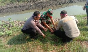Danpos Ambarawa Bersama 4 Anggota Koramil 424-06/Psw dan Anggota Polsek Pringsewu Melaksanakan Kegiatan Penanaman Pohon Sepanjang Tanggul Sungai Way Napal di Pekon Ambarawa Barat Kec.Ambarawa. Rabu (23/08/2023).