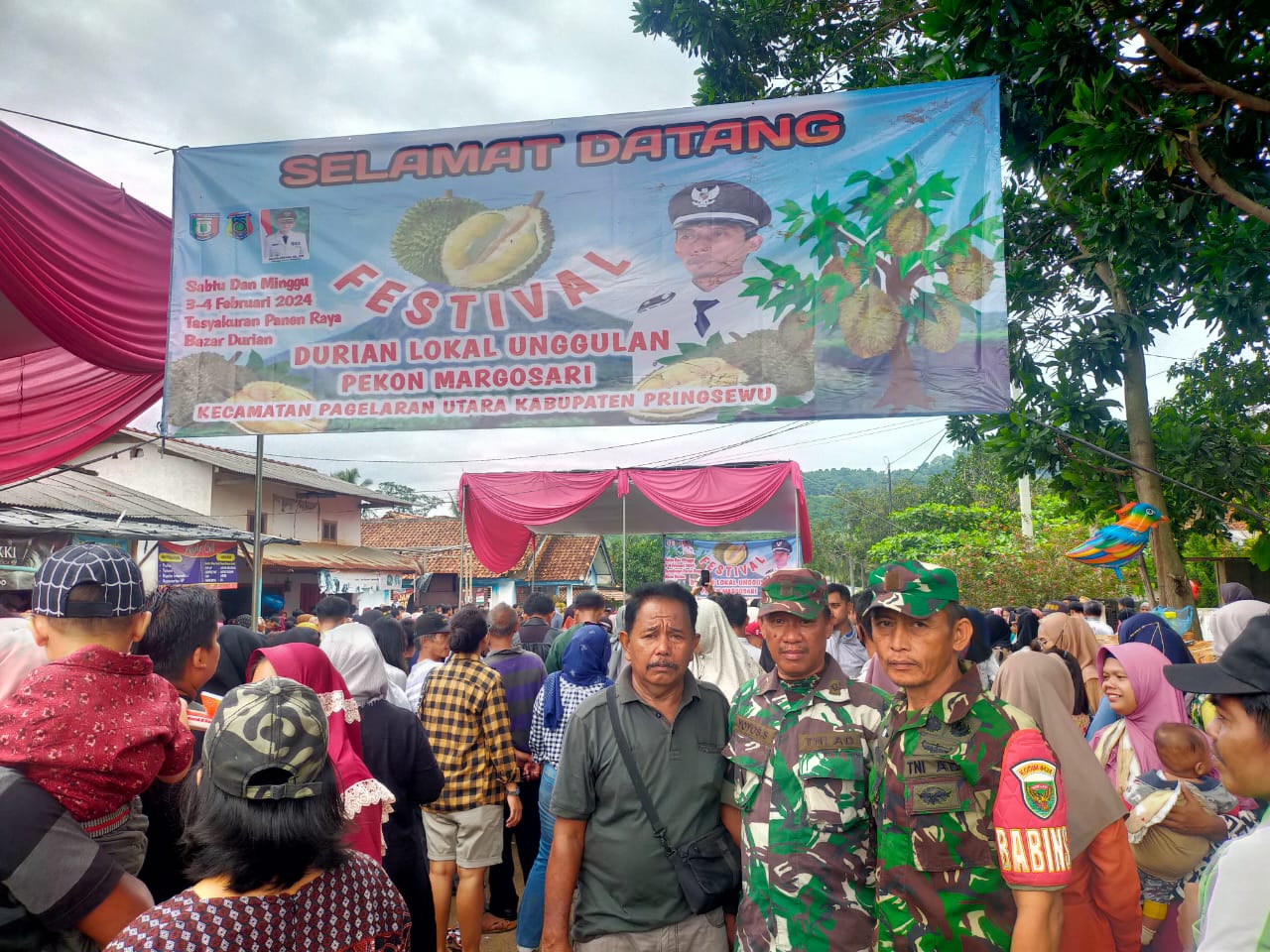 Koramil 424-05/Pagelaran Kodim 0424/Tanggamus melakukan pengamanan kegiatan festival durian di Pekon Margosari, Kecamatan Pagelaran Utara Kabupaten Pringsewu, Sabtu (3/2/24).