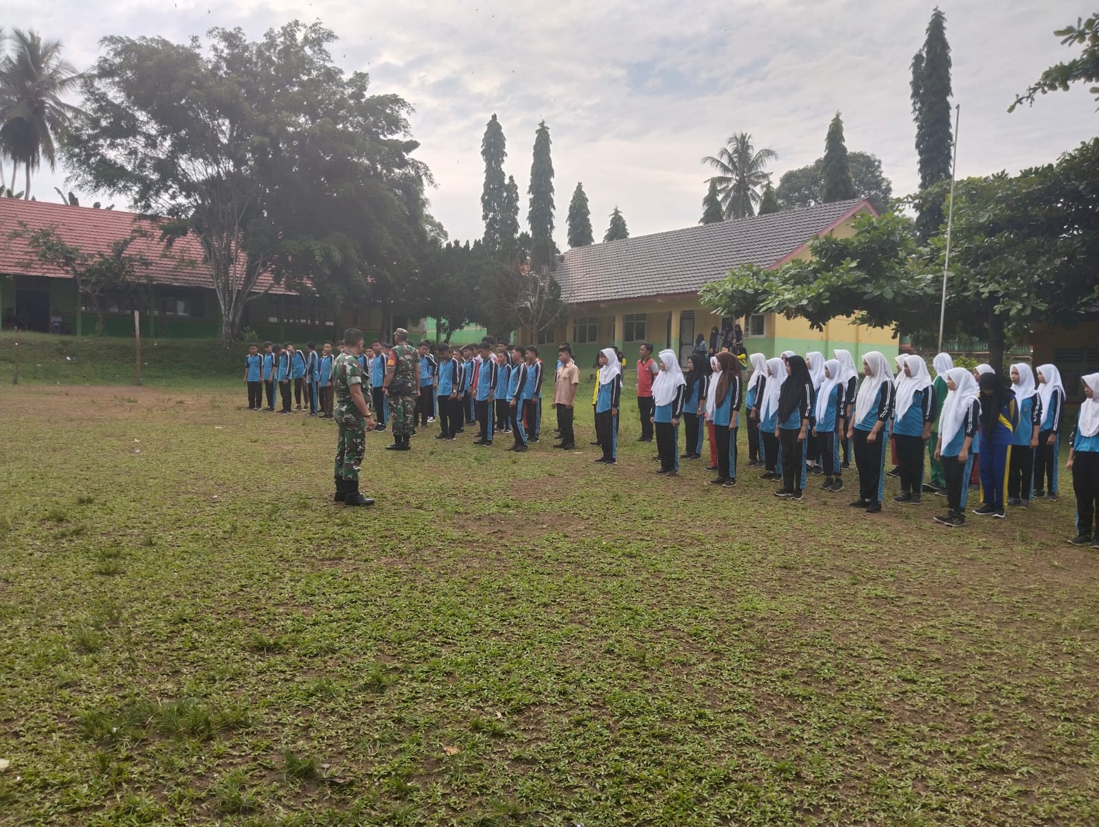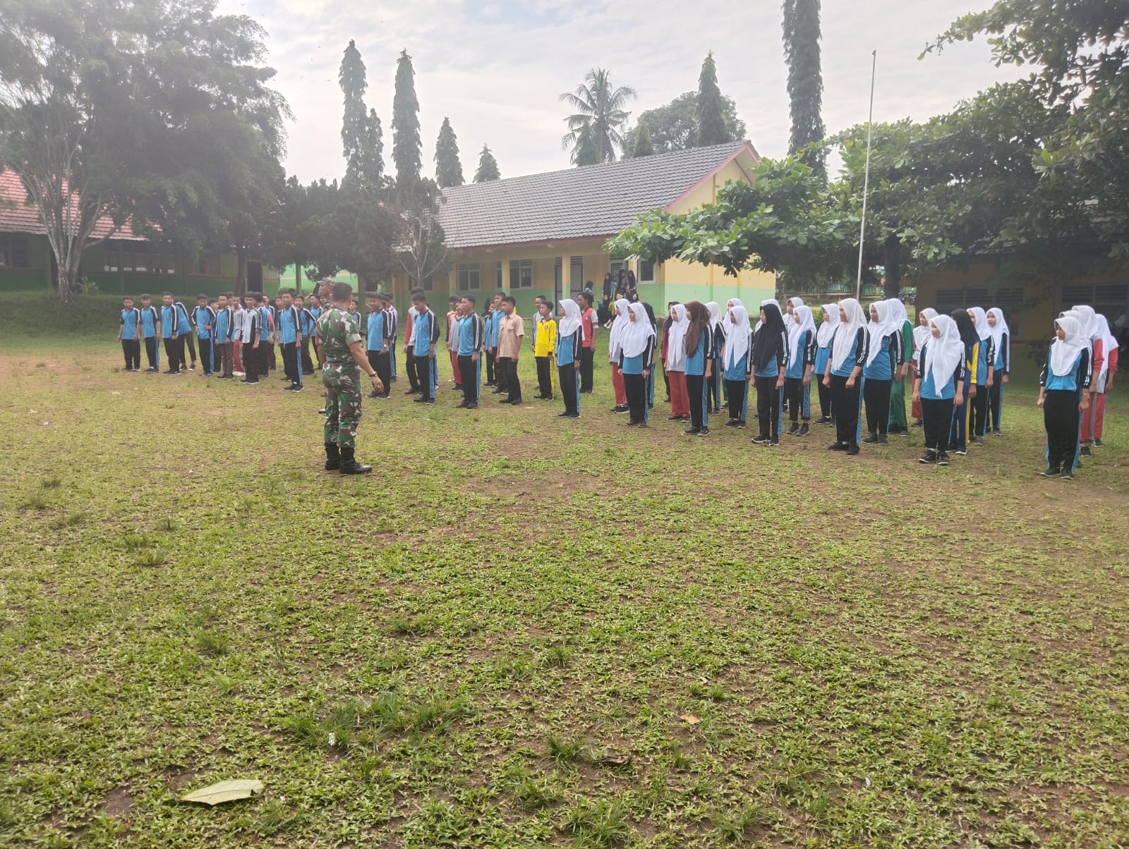 Babinsa Koramil 424-02/Wonosobo Serda Iryafi dan Serda Sudarmanto memberikan Latihan Peraturan Baris Berbaris (PBB) kepada seluruh siswa-siswi baru peserta Masa Pengenalan Lingkungan Sekolah (MPLS) di SMA 1/Wonosobo, Kec.Wonsobo, Kab. Tanggamus, Kamis (20/07/23).
