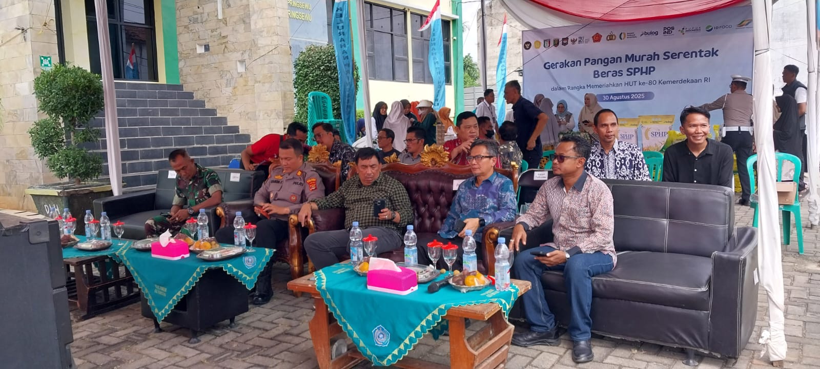 Pabung Kodim 0424/Tanggamus Mayor Inf P. Rahmat Hartanto S.Sos., menghadiri kegiatan Gerakan pangan murah (GPM) beras stabilitasi pasokan dan dan harga pangan (PSHT) secara Serentak bertempat di lapangan kantor Camat kota pringsewu, kelurahan pringsewu barat, Kec. Pringsewu Kab. Pringsewu, Sabtu (30/08/2025).