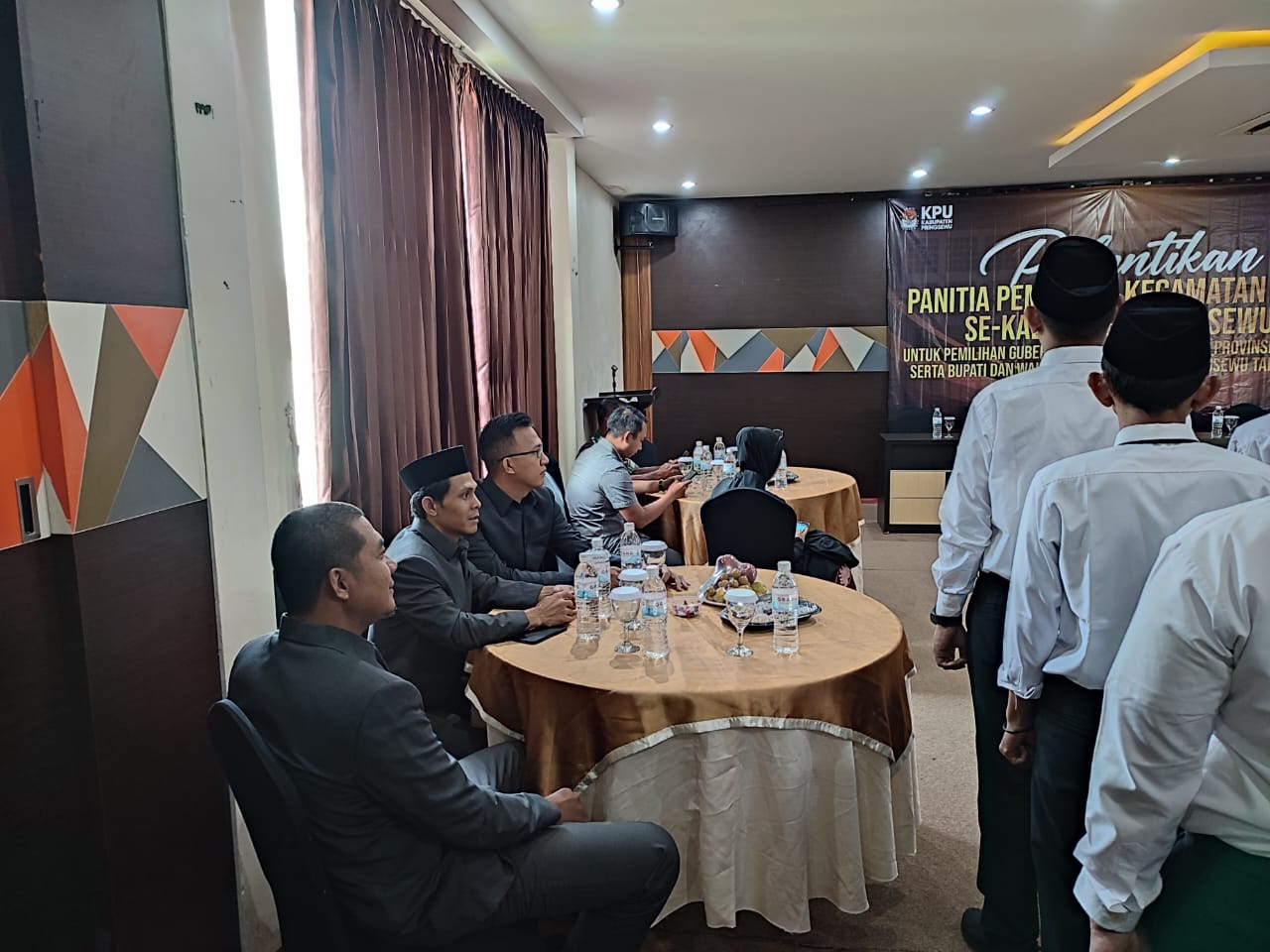 Hadir dalam kegiatan tersebut antaralain Komisioner KPU Prov. Lampung (Warsito), Ketua KPU Pringsewu (Sofyan Akbar Budiman, M.Pd), Ketua Bawaslu Pringsewu (Suprondi, S.Kom), Pabung Kab. Pringsewu Kodim 0424 (Kpt. Inf. P Rahmat Hartanto), Kasat Intelkam Polres Pringsewu (IPTU M. Anton Prabowo, S.Tr.K), Kaban Kesbangpol Kab. Pringsewu (Sukarman, S.Pd), Kemenag Kab. Pringsewu (Junaidi, S.Ag.,M. Sos), Komisioner KPU Kab. Pringsewu (Sulaiman, S.Pd), Komisioner KPU Kab. Pringsewu (Dewi Eliyasari, M.Si), Komisioner KPU Kab. Pringsewu (Juniantama Ade Putra, S.Sos.), Komisioner KPU Kab. Pringsewu (Saifudin, S.H.I), Staf KPU Prov. Lampung, Staf KPU Kab. Pringsewu, Staf Bawaslu Kab. Pringsewu, serta PPK Terpilih Se- Ka. Pringsewu.