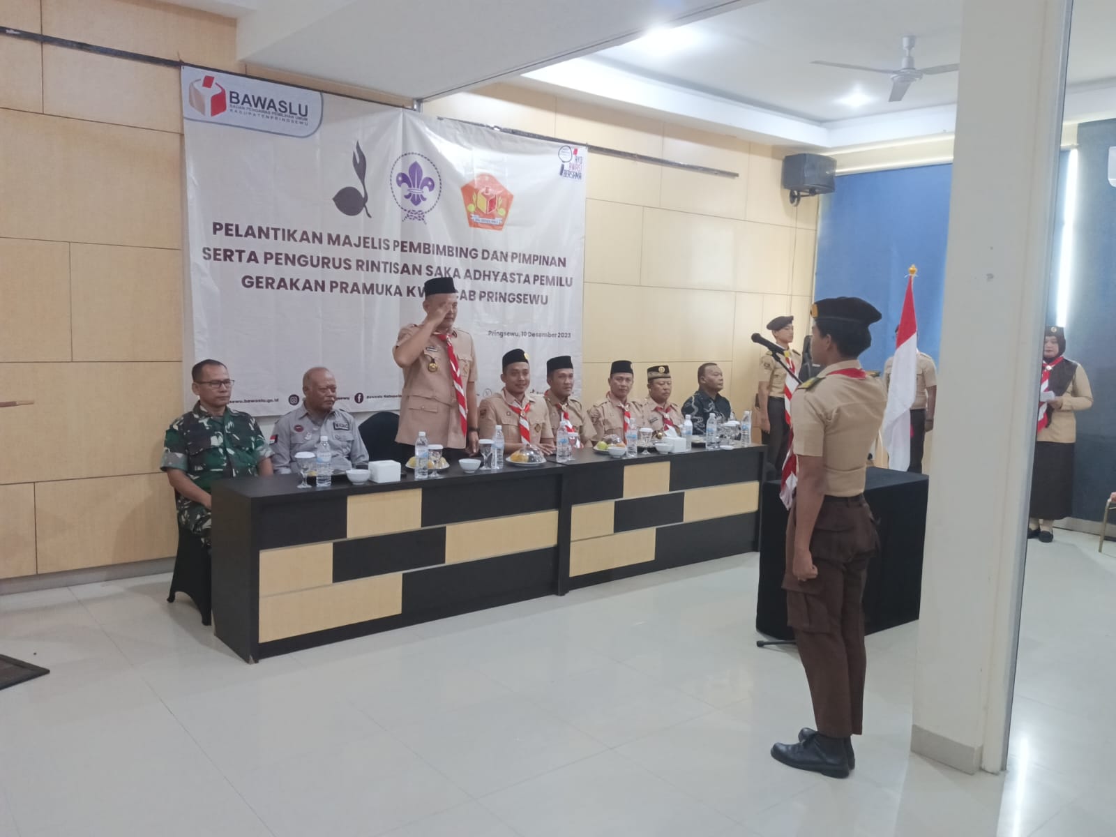 Hadir Dalam Kegiatan tersebut antaralain Pj Bupati Pringsewu diwakili Kepala Kesbangpol Kab. Pringsewu ( Sukarman, S. Pd ), Dandim 0424/Tanggamus diwakili Pabung Kodim 0424/Tanggamus ( Mayor Cpl Sarwan Iranu ), Kapolres Pringsewu diwakili Kasatbinmas Polres Pringsewu ( Iptu Mardiono ), Kakwarcab Kabupaten Pringsewu ( Dr. Fauzi., SE.,M Kom.,Akt.,CA.,CMA), Ketua Bawaslu Kab. Pringsewu ( Suprondi ), KadisporaKab. Pringsewu ( Ibnu ), Peserta Pelantikan Saka Adhyasta Pemilu Bawaslu serta Tamu Undangan.