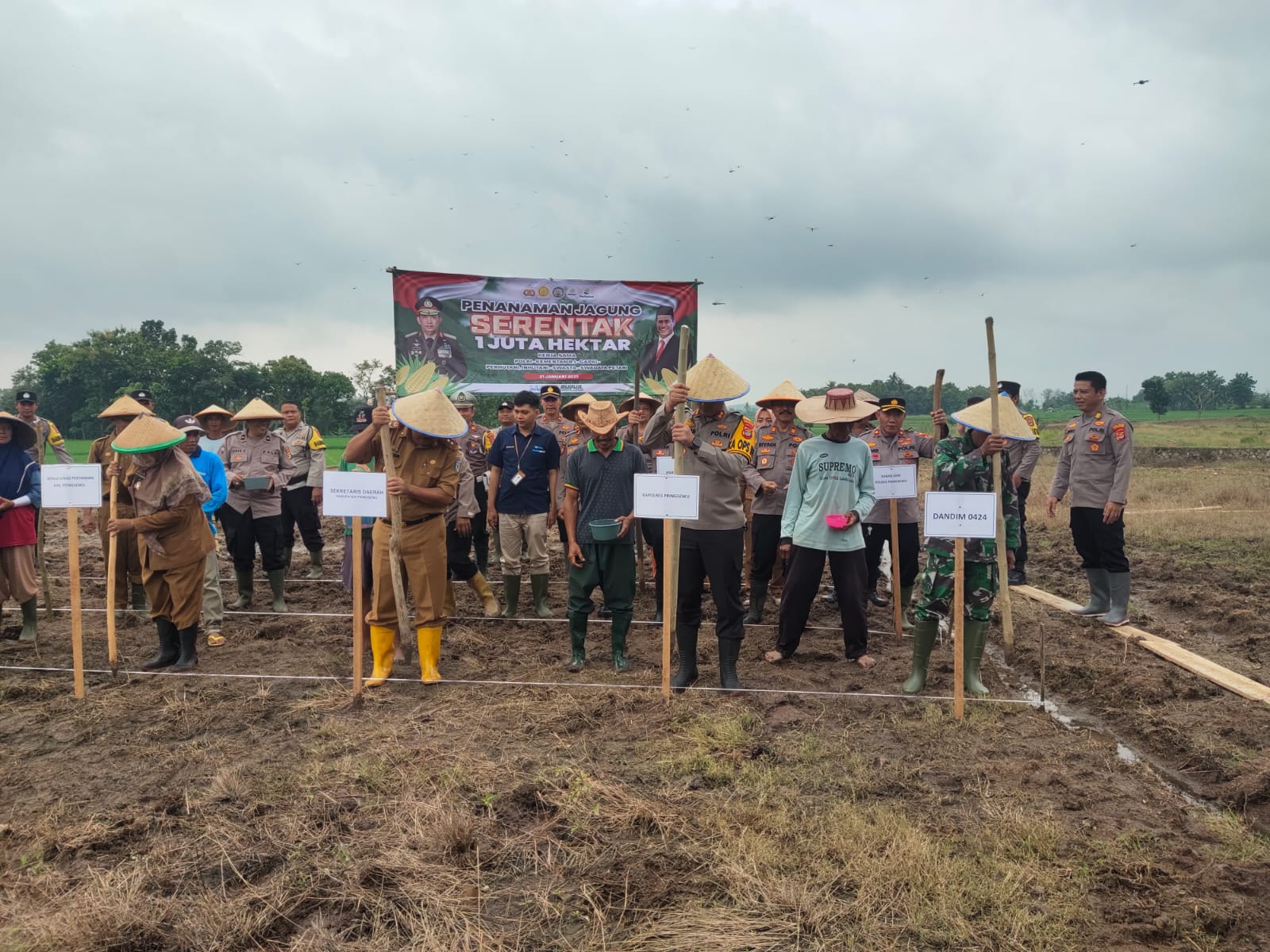 Pabung Kodim 0424/Tanggamus Kapten Inf Rahmat H S.Sos., menghadiri Kegiatan Penanaman Jagung Serentak se-Indonesia yang dilaksanakan oleh Polres Pringsewu, bertempat di Lahan Tanam Polres Pringsewu, Selasa (21/01/2025).