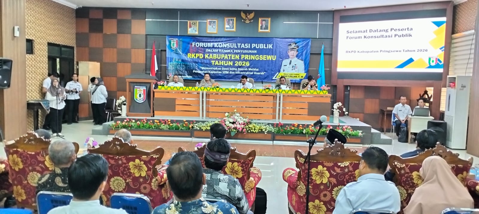 Forum Komunikasi Konsultasi Publik sebagai sarana untuk menjaring aspirasi pemangku kepentingan pada tahap awal yang kemudian akan dituangkan kedalam penandatanganan Berita Acara Kesepakatan Forum Konsultasi Publik sebagai bahan perbaikan dan penyempurnaan Rencana Awal RKPD Kabupaten Pringsewu Tahun 2026.