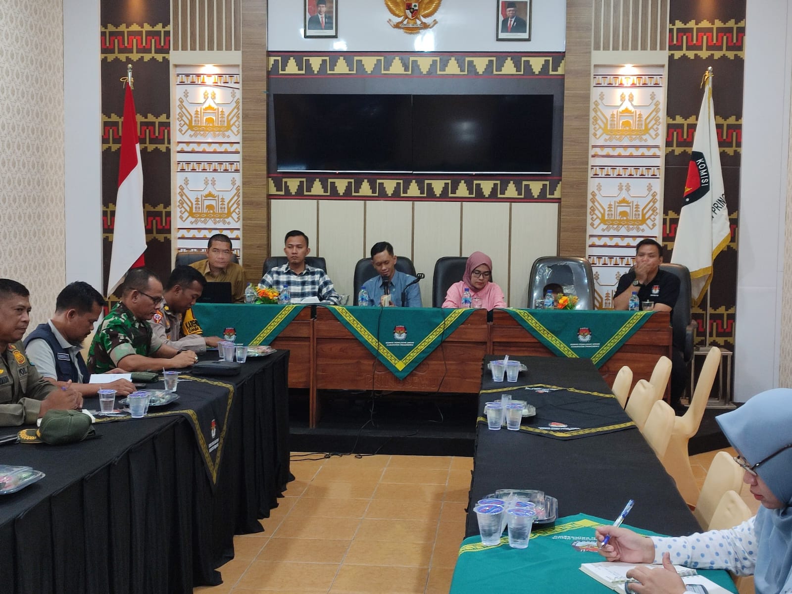 Jika menggunakan ruang bawah agar berkoordinasi dengan pihak hotel untuk pintu masuk dibedakan antara tamu umum dan peserta pleno. Terkait pengamanan di Gudang KPU Pringsewu perlu ditingkatkan sampai dengan pleno tingkat Provinsi dan Pusat.
