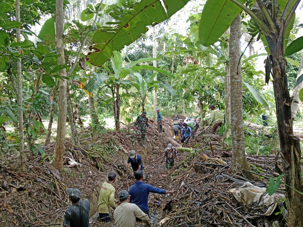 Pasca Banjir, Babinsa Koramil 424–10/Pardasuka Gotong – Royong Bersihkan Parit Bersama Warga Binaannya