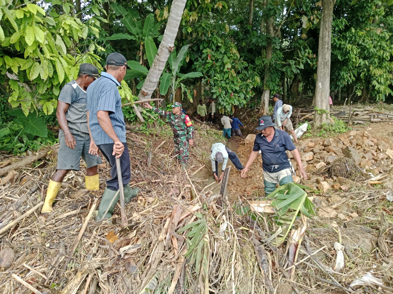 Pasca Banjir, Babinsa Koramil 424–10/Pardasuka Gotong – Royong Bersihkan Parit Bersama Warga Binaannya