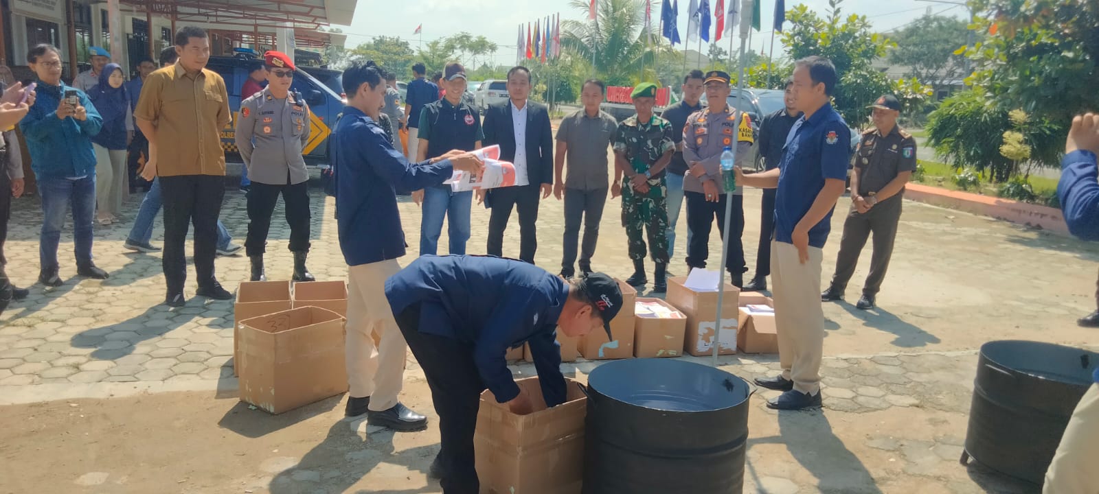 Pasi intel Kodim 0424/Tanggamus Kapten Inf Rahmat H menghadiri Pemusnahan 2.705 lembar sisa surat suara pemilihan umum tahun 2024 yang bertempat di Halaman Kantor KPU Kabupaten Pringsewu, Selasa (13/02/2024).