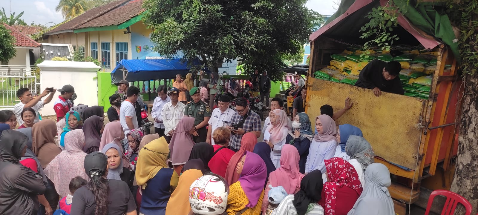 Pasi OPS Kodim 0424/Tanggamus menghadiri kegiatan penyaluran beras stabilisasi pasokan harga pangan yang dilaksanakan oleh pemerintah kabupaten Tanggamus, Bertempat di ruang terbuka hijau Soekarno Hatta, Kecamatan Kota Agung , Kabupaten Tanggamus, Rabu (06/12/2023).